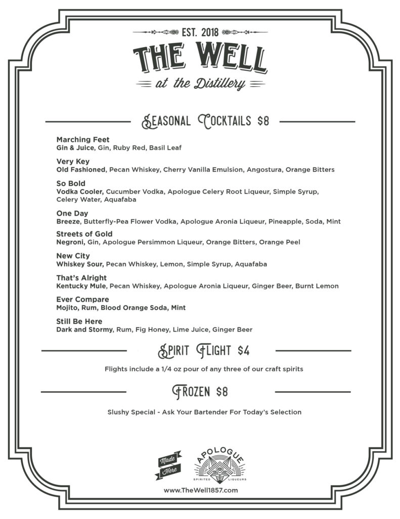 Our event hall has the character to make your celebration one to remember. Built as an extension of The Well during its time as Frederick’s Brewing Company, the Distiller’s Hall is both industrial chic and hometown rustic. With original fixtures from the 1950’s with modern touches, the hall is great for festivities of all sorts and sizes. With our limestone bar nearby, the drinks will be always ready.